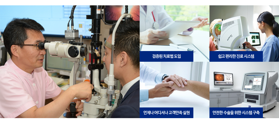 성모안과는 백내장, 녹내장, 망막질환 등 실명을 유발하는 노인성 안질환부터 안검하수, 눈물흘림증 등의 안성형, 라식과 라섹 등의 시력교정술 분야에 이르기까지 보다 나은 치료를 위한 새로운 치료법 도입에 앞장서고 있습니다.